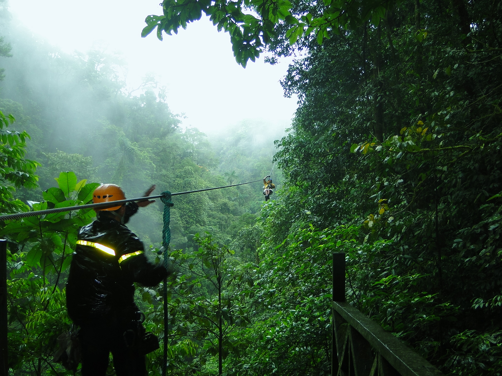 Over 3000 feet was the highest point at which I zip-lined or death slide as it’s also known as, thru the Costa Rican rain forest…the steady downpour of rain did not help matter’s as it made it much more difficult to apply the brakes to the slippery cable…but what a thrill it was soaring like an Eagle high above the Costa rican jungle, looking down praying the cable would not break!!!…lol